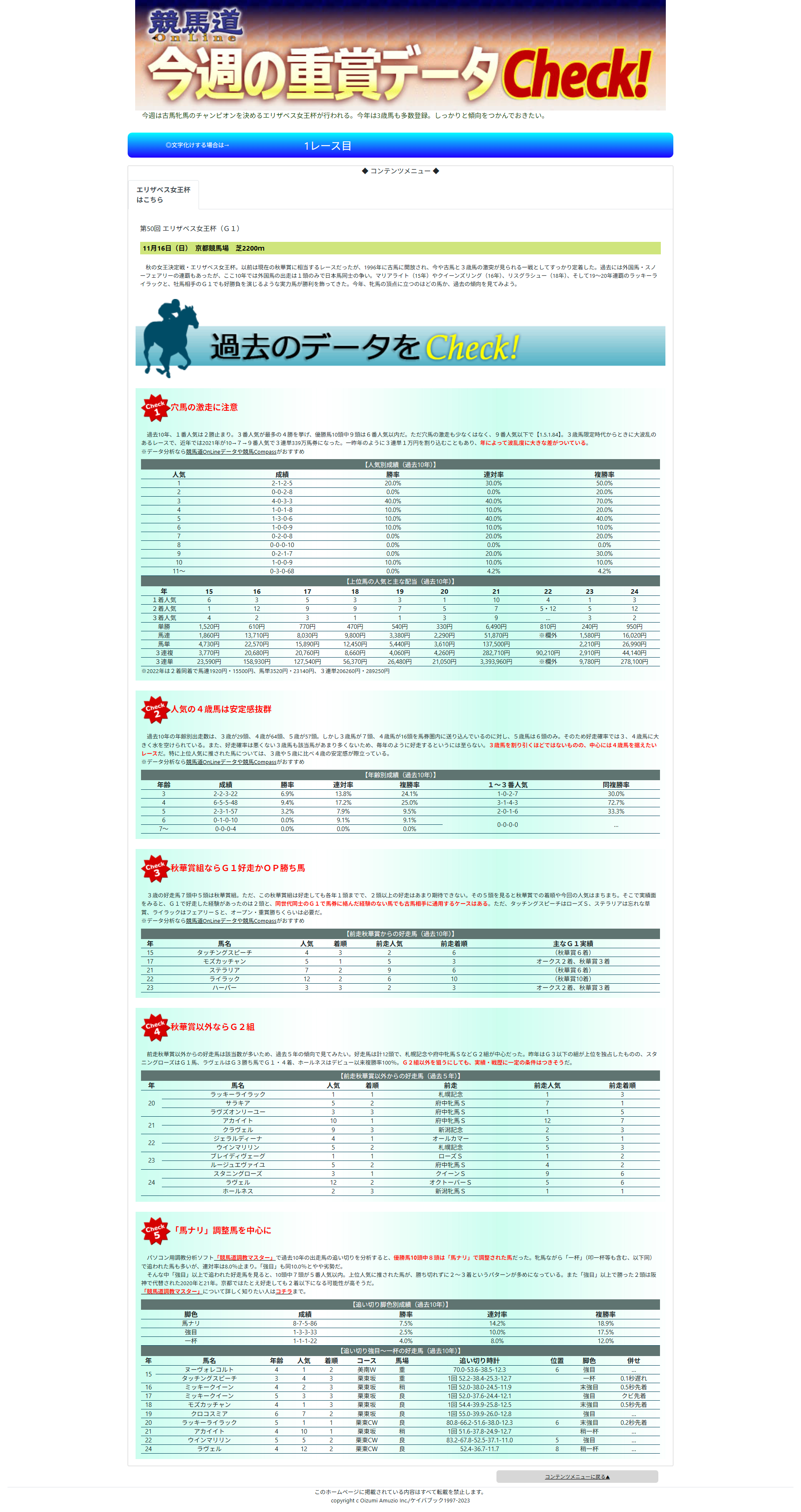 | 年 | 馬名 | 年齢 | 人気 | 着順 | コース | 馬場 | 追い切り時計 | 位置 | 脚色 | 併せ |