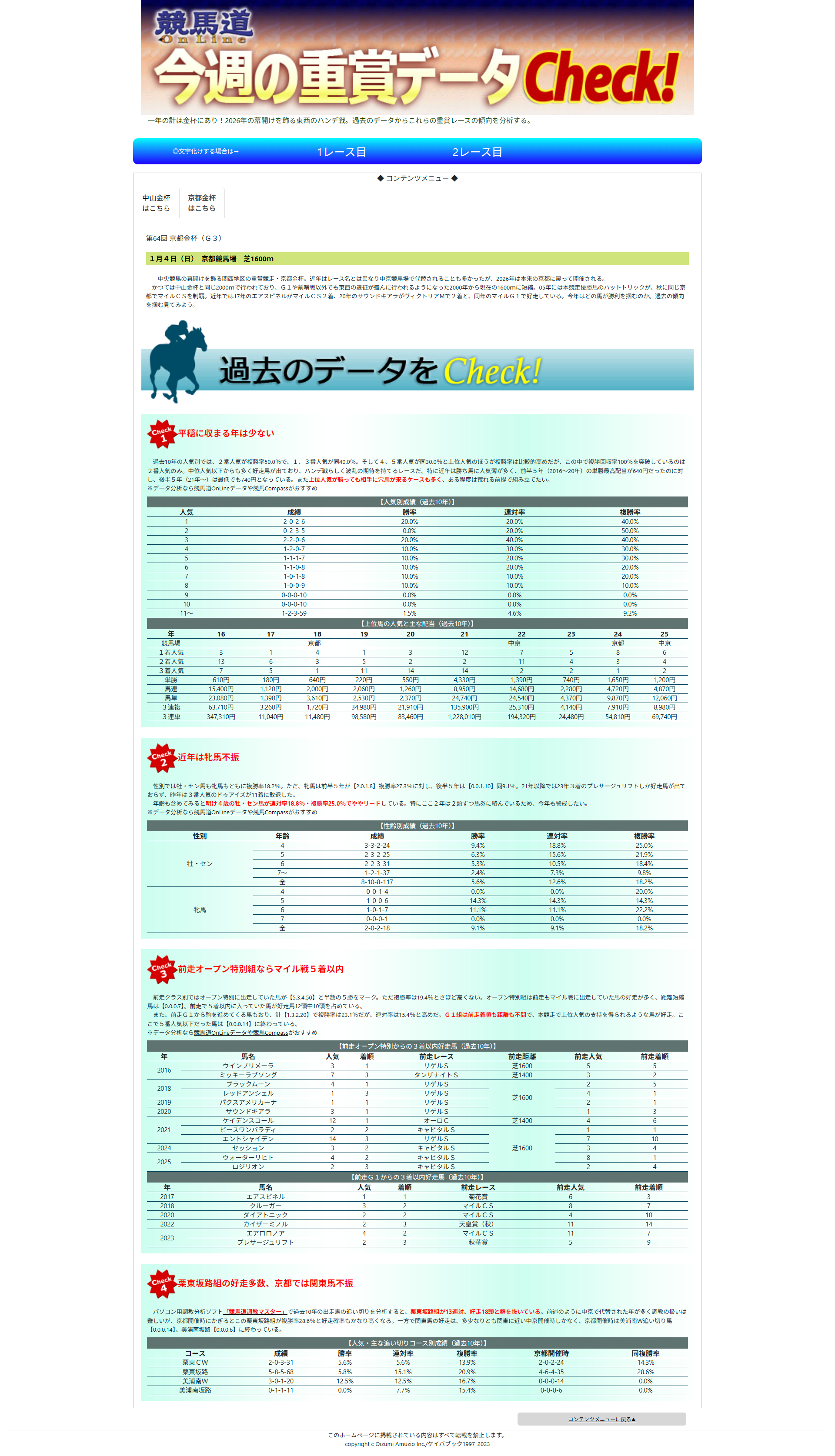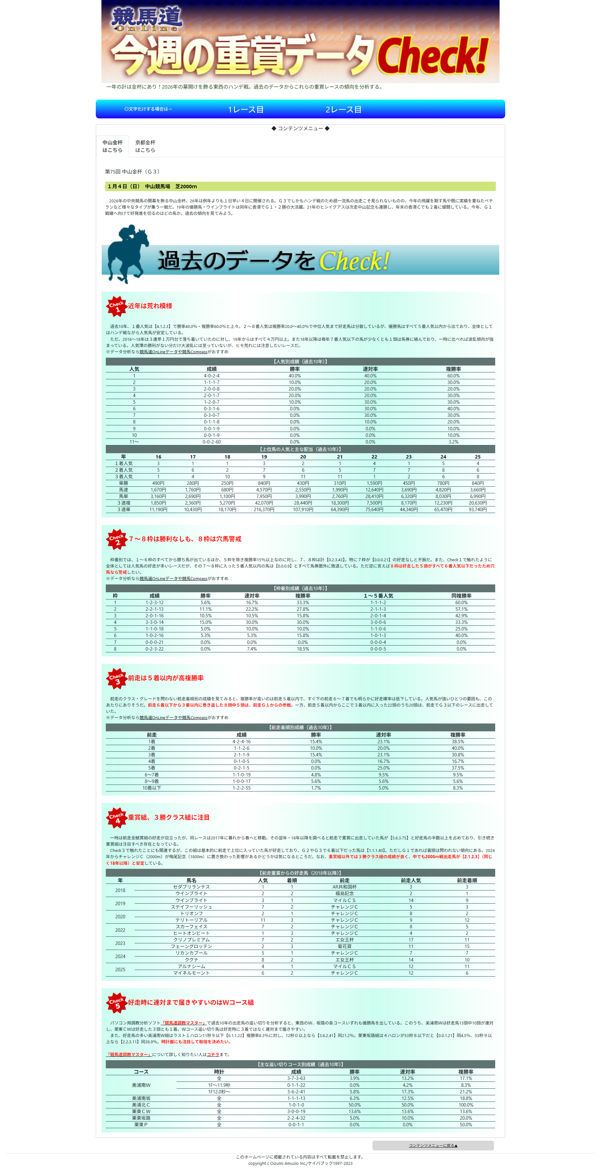 一年の計は金杯にあり!2026年の幕開けを飾る東西のハンデ戦。過去のデータからこれらの重賞レースの傾向を分析する。
